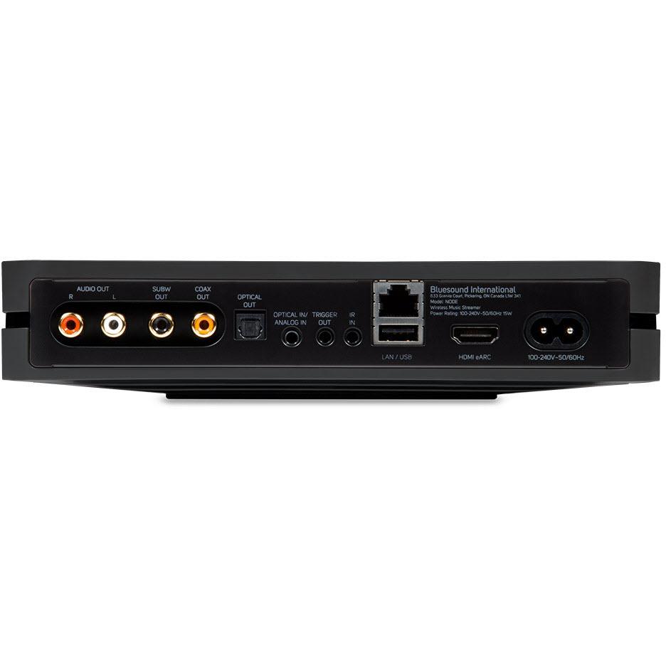Bring music into your NODE using HDMI eARC, Wi-Fi or Ethernet, Apple AirPlay 2, aptX HD Bluetooth, or USB, to hear audio content from streaming services, TV, and your own music library. Listen to your music through your HiFi system or through wired or wireless headphones, by connecting to the RCA, TOSLINK optical, aptX HD Bluetooth, 3.5mm jack, Apple devices, or other Bluesound or BluOS players.