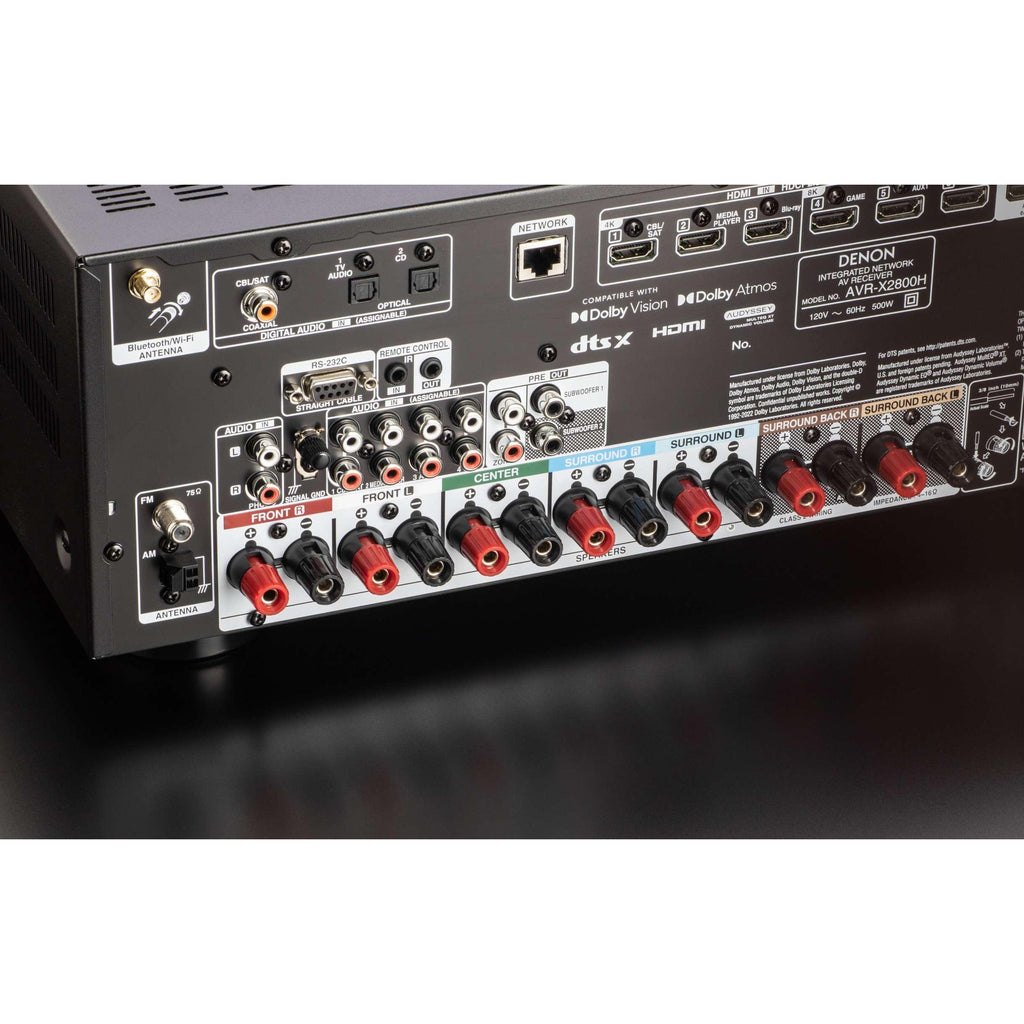 • Speaker Terminals. Connect up to seven speakers for 5.1.2 Dolby Atmos setup. You can also choose 7.1 floor only or 5.1 + 2.0 multi-zone speaker setup