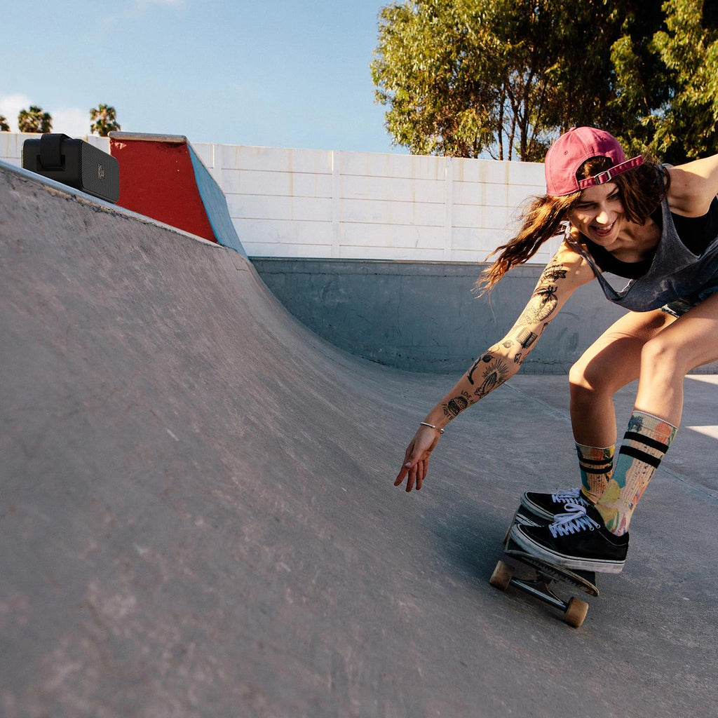 This powerful Bluetooth speaker can last up to 20 hours on a single charge. Whether you’re kickin’ it downtown or cruising through the Motor City streets, the Klipsch Detroit’s longlasting battery has you covered.
